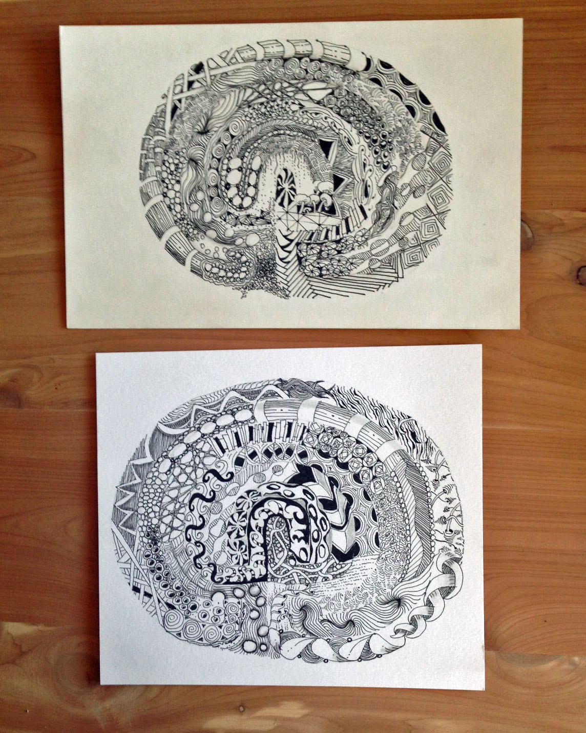 We got excited about tangling on a labyrinth. You can double click on the images to make them larger. To learn how to draw your own labyrinth follow this video link.
